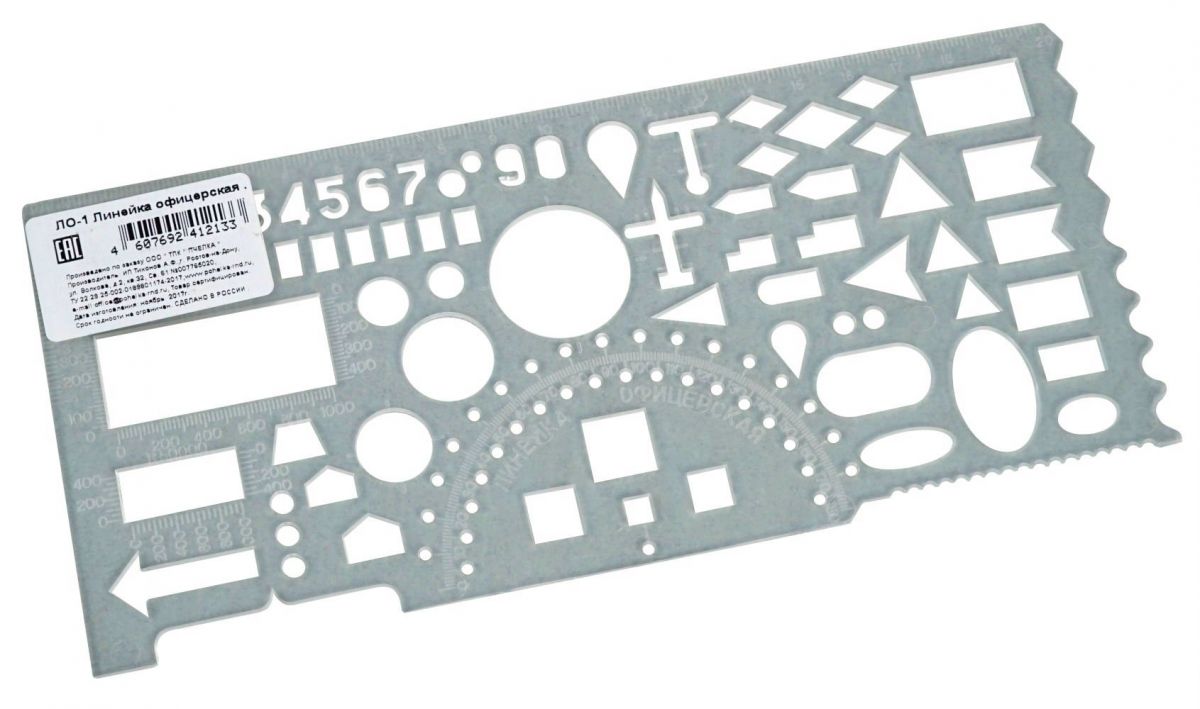 Линейка офицерская, гибкая, тонированная. Необходима при создании графических изображений и построении карт. Содержит 65 тактических элементов и линейку 20 см с отливной шкалой. Материал: полипропилен.